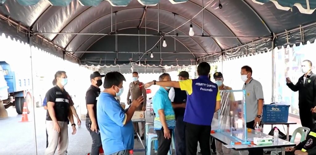 ส่วนจังหวัดตราด 1 ใน 5 จังหวัด พื้นที่ควบคุมสูงสุดและเข้มงวด ตามประกาศของ ศบค. ยังคงดำเนินตามมาตรการพื้นที่ควบคุมสูงสุดและเข้มงวด โดยตรวจเข้มการเดินทางเข้าพื้นที่ ซึ่งที่เห็นอยุ่นี้ เป็นจุดตรวจบ้านท่าจอด ตำบลแสนตุ้ง อำเภอเขาสมิง เจ้าหน้าที่ฝ่ายปกครอง ตำรวจ ทหาร และสาธารณสุข บูรณาการการทำงานร่วมกันตลอด 24 ชั่วโมง ในการ ตรวจวัดอุณหภูมิร่างกายผู้ที่จะเดินทางเข้าจังหวัดตราด ตรวจใบอนุญาตเดินทางที่ระบุปลายทางชัดเจน นอกจากจุดตรวจบ้านท่าจอด ที่ดำเนินการคัดกรองผู้ที่จะเดินทางเข้ามาในพื้นที่แล้ว ยังมีจุดคัดกรองที่จุดตรวจด่านคลองลึก ตำบลหนองบอน อำเภอบ่อไร่ และจุดด่านตรวจบ้านนาแกลง ตำบลประณีต อำเภอเขาสมิงด้วย