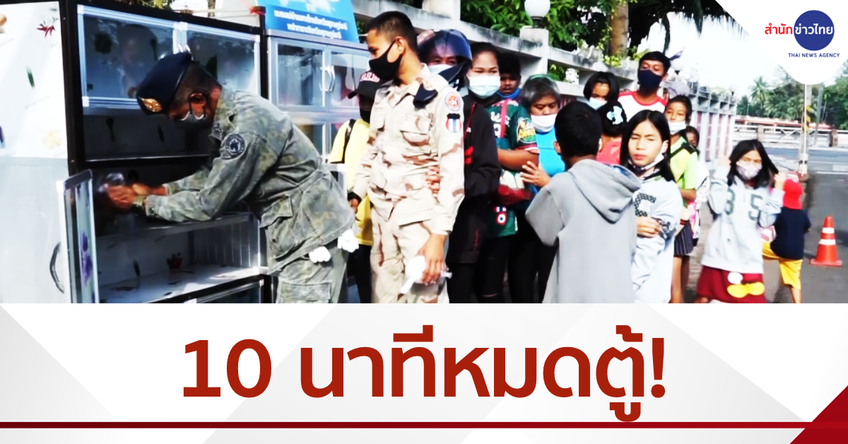 สุราษฎร์ธานี 14 ม.ค.- จังหวัดสุราษฎร์ธานีวางตู้ปันสุขหน้าจวนแบ่งปันให้คนเดือดร้อนไม่ถึง 10 นาทีแทบหมดตู้ส่วนใหญ่เป็นชาวบ้านที่ได้รับผลกระทบจากวิกฤติโควิด-19