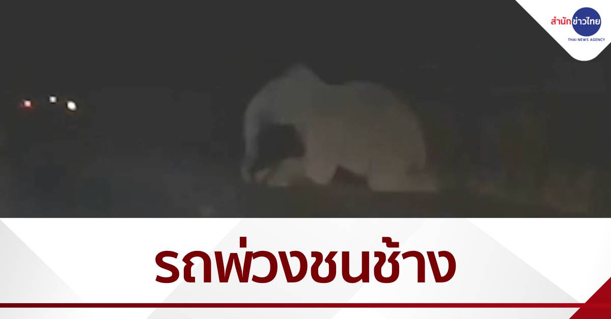 ฉะเชิงเทรา 15 ม.ค.-กล้องหน้ารถบันทึกภาพช้างป่าเพศผู้เขาอ่างฤาไน ถูกรถพ่วง 18 ล้อ พุ่งชนเต็มแรง คล้ายขาหัก มีเลือดออกจากปาก แต่พยายามประคองตัวเดินข้ามฝั่งเข้าป่าไป