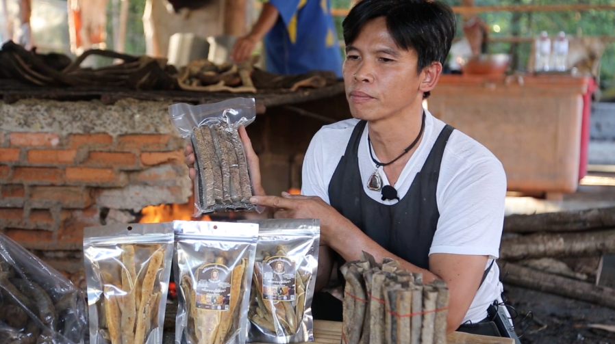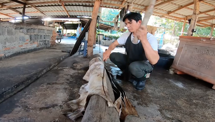 ไปดูภูมิปัญญาชาวบ้านอีกอย่างหนึ่งที่ทำเป็นอาชีพ สร้างรายได้เป็นกอบเป็นกำมากว่า 40 ปี โดยเฉพาะหน้าหนาวปีนี้ที่อากาศหนาวเย็นมากกว่าทุกปี รายได้ทะลุแสนบาทต่อเดือน อาชีพที่ว่านี้คือการทำ “หนังควายเค็ม” ของคุณพ่อประนอม หรือคุณตาประนอม ชนะเคน อายุ 70 ปี ชาวบ้านน้อยชลประทาน ต.เวินพระบาท อ.ท่าอุเทน จ.นครพนม