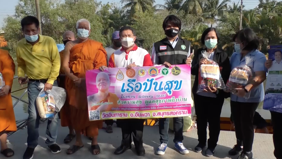 วัดยังช่วยประชาชนต่อเนื่อง สำหรับโรงทานเดลิเวอรีวัดอินทาราม ตำบลเหมืองใหม่ อำเภออัมพวา จังหวัดสมุทรสงคราม โดยพระครูพิศิษฎ์ประชานาถ หรือ หลวงพ่อแดง นันทิโย รองเจ้าคณะอำเภออัมพวา เจ้าอาวาสวัดอินทาราม นอกจากจะออกแจกข้าวกล่องพร้อมข้าวสารอาหารแห้งให้กับประชาชนที่เดือดร้อนบนฝั่งแล้ว วันนี้วัดอินทารามยังจัดโรงทานเดลิเวอรี “เรือปันสุข” ส่งความสุขดูแลสุขภาพถึงบ้าน