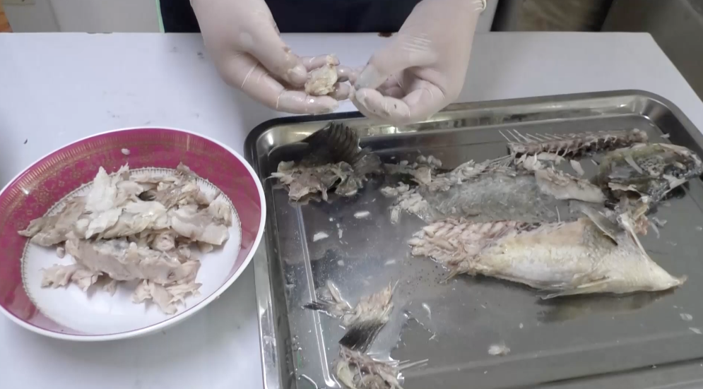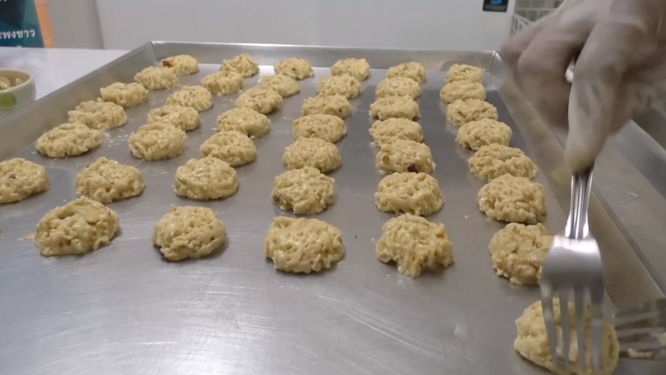ขั้นตอนการทำก็เหมือนคุกกี้ทั่วไป เริ่มต้นจากการนำปลากะพงขาวมาขอดเกล็ด นำไส้ออก จากนั้นนำมาต้มน้ำให้สุก และนำมาลอกเนื้อออกยีให้เนื้อปลาฟูใส่ถ้วยรอไว้ จากนั้นตีเนยด้วยเครื่องจนขึ้นฟู ใส่แป้ง ไข่ไก่ ตีให้เข้ากัน ร่อนแป้งใส่ลงไปตีผสมจนเข้ากันดี จากนั้นใส่ส่วนผสมทั้งหมดรวมทั้งเนื้อปลากะพง ผสมให้เข้ากันด้วยไม้พาย ใช้ช้อนตักใส่เครื่องชั่งให้ได้น้ำหนักที่ต้องการ และตักลงในถาดที่รองด้วยกระดาษรองอบ นำเข้าอบจนคุกกี้สุกเหลือง นำมาซีลในถุงสูญญากาศ บรรจุกล่องแพ็กเกจอย่างสวยงาม.-สำนักข่าวไทย