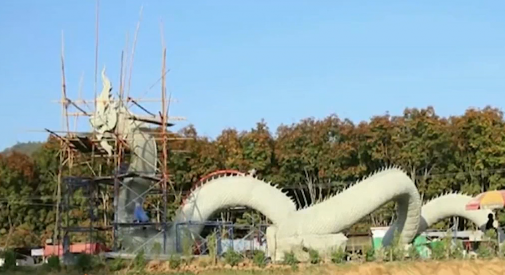 สำหรับพญานาค ปู่ปาริจิตนาคราช ส่วนลำตัวสูงประมาณ 3 เมตร ส่วนหัวสูงประมาณ 7 เมตร ความยาวประมาณ 44 เมตร เริ่มก่อสร้างตั้งแต่เดือนธันวาคม 2563 จนถึงปัจจุบันเสร็จไปแล้วประมาณ 70 %.-สำนักข่าวไทย