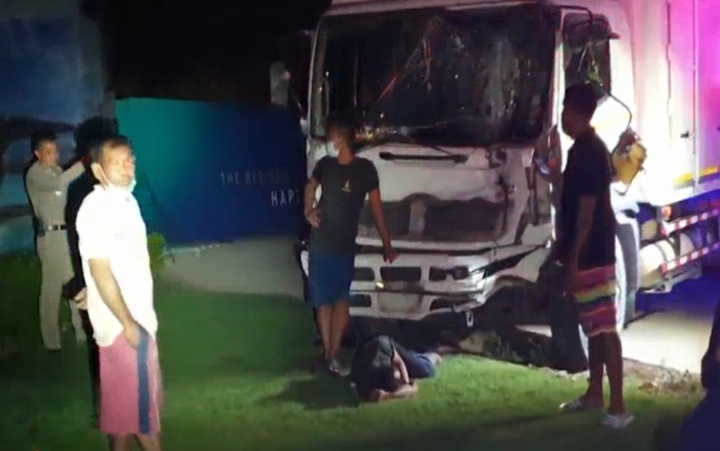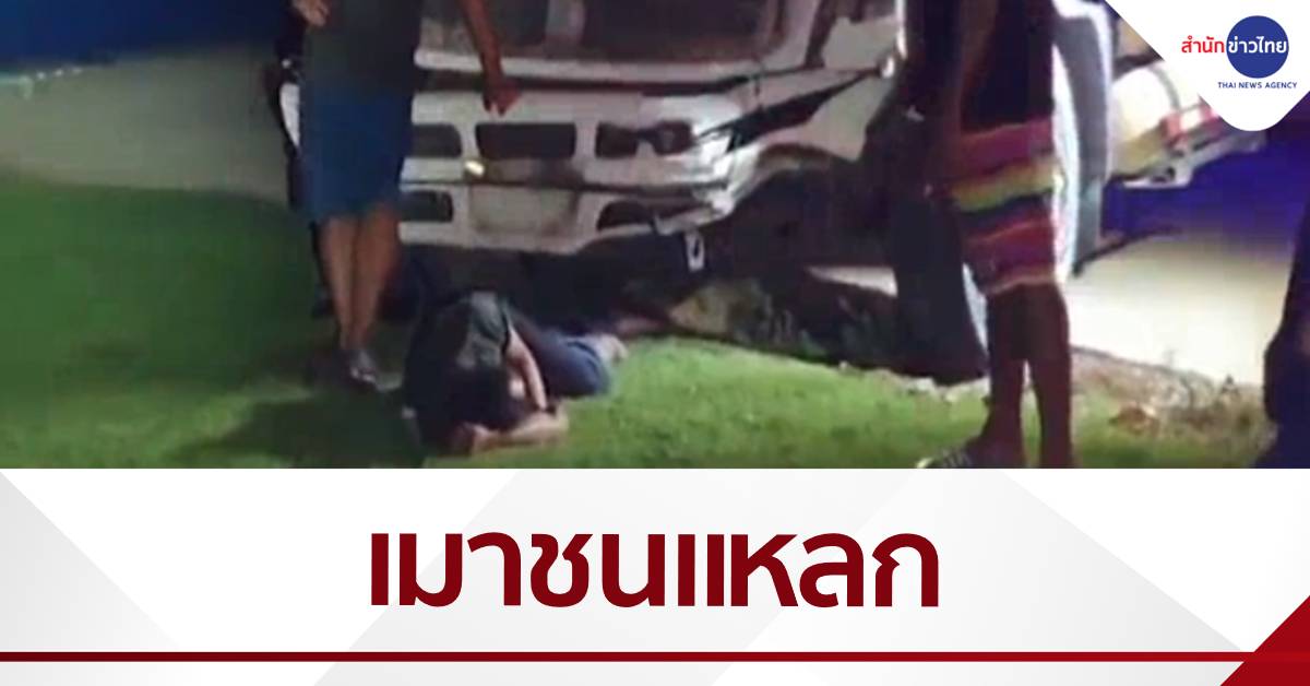 ปทุมธานี 24 ม.ค.-สิบล้อเมาชนกระบะตกข้างทาง มีผู้บาดเจ็บ 2 ราย ก่อนพุ่งชนกำแพง สุดท้ายคนขับลงมานอนหมดสภาพหน้ารถ