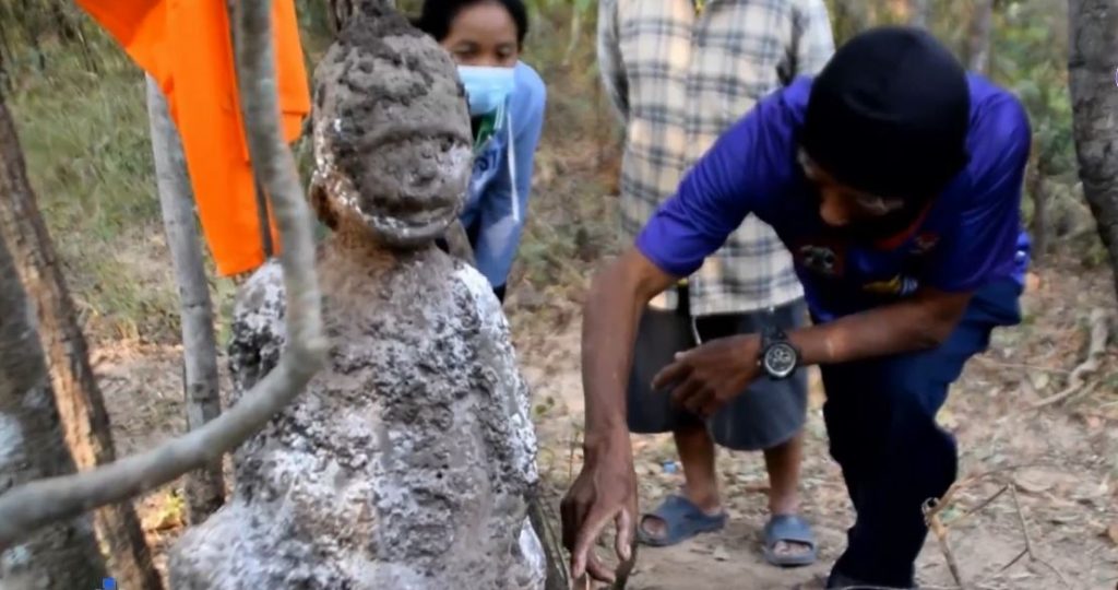 ขณะที่บางคนบอกว่า จอมปลวกนี้มีใบหน้าคล้ายหลวงปู่เมย วัดลำดวน ต.ทมอ ที่มรณภาพไปแล้ว วันนี้เป็นวันครบรอบปีที่ 15 ที่หลวงปู่มรณภาพ. – สำนักข่าวไทย