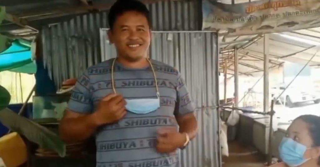 นายวิมล โอสถานนท์ อายุ 41 ปี ขายปลาอยู่ริมทางหลวงสายหลัก ท่าตะเกียบ–คลองหาด ช่วงบริเวณสามแยกบ้านทุ่งส่าย ต.คลองตะเกรา อ.ท่าตะเกียบ จ.ฉะเชิงเทรา ซึ่งเป็นคนเดียวกับที่โพสต์ในเฟซบุ๊ก โชว์ภาพใช้สร้อยคอทองคำหนัก 5 บาท เป็นสายคล้องหน้ากากอนามัย มีผู้แสดงความคิดเห็นในโพสต์ดังกล่าวมากพอสมควร