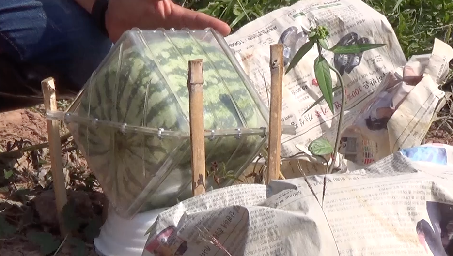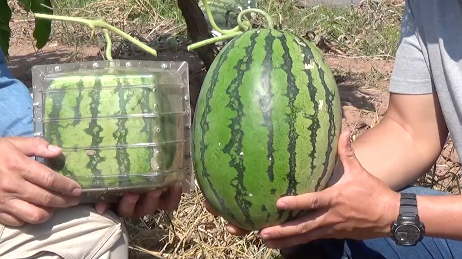 นายเชษฐิพงษ์ กล่าวว่าช่วงที่ทำงานต่างประเทศได้ศึกษาเรียนรู้การสร้างมูลค่าสินค้าภาคเกษตร “ครูพักลักจำ” เมื่อลาออกจึงขอปรับที่นา 2 ไร่ของครอบครัว เพราะไม่มีน้ำปลูกข้าวไม่ได้ หันมาปลูกไม้ผล คือมะม่วงทุกสายพันธุ์ พบว่าร่องระหว่างต้นมะม่วงยังพอมีที่ว่าง จึงเลือกปลูกพืชใช้น้ำน้อยและอายุสั้นกว่าปลูกข้าว คนในพื้นถิ่นยังหาซื้อรับประทาน จะได้มีรายได้ช่วงรอเก็บผลผลิตมะม่วง จึงเลือกปลูกแตงโมตามคำแนะนำของ จนท.เกษตรฟากท่า กลายเป็นแปลงเกษตรปลอดภัย “แบบทูอินวัน” ทั้งนี้เลือกสร้างมูลค่าเพิ่มจากผลผลิตแตงโม ปรับจากปลูกแตงโมรูปทรงธรรมดาวางขายตามท้องตลาด เป็น “แตงโมแฟนซีไร้เมล็ด” สร้างรูปทรงแปลกน่าสนใจ เพิ่มความใส่ใจ และต้องเป็นเกษตรปลอดภัย ด้วยการสวมบล็อกรูปทรงตามที่เราต้องการครอบลูกแตงโม ในช่วงอายุ 20-25 วัน มีทั้งรูปทรงสี่เหลี่ยม รูปหัวใจ แบบไร้เมล็ดโดยเพิ่มความใส่ใจ อย่าให้ลูกถูกแดดจัด หาหญ้าหรือฟางคลุม ส่วนน้ำช่วงรดน้ำต้นมะม่วง แตงโมก็ได้รับน้ำไปด้วย ยิ่งประหยัดและจากนั้นอีกประมาณ 40 วันก็เก็บผลผลิตส่งลูกค้าได้