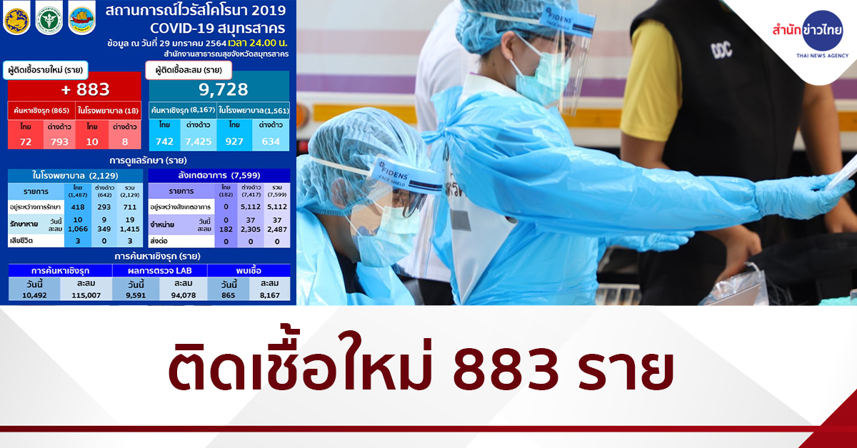 สมุทรสาครตรวจเชิงรุก ติดเชื้อใหม่ 883 ราย