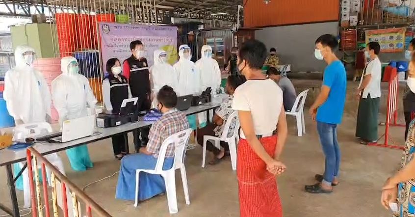 เมื่อช่วงเช้าวันนี้ ที่ตลาดกลางกุ้งจังหวัดสมุทรสาคร จัดหางานจังหวัดสมุทรสาครได้นำเจ้าหน้าที่มาตั้งโต๊ะ เพื่อทำการลงทะเบียนผู้ใช้แรงงานต่างด้าวที่ยังไม่มีบัตรและนายจ้างที่อาศัยอยู่ในหอพัก และเคยทำงานในตลาดกุ้งแห่งนี้แต่เป็นการทำงานแบบชั่วคราวไม่ใช่ลูกจ้างประจำ