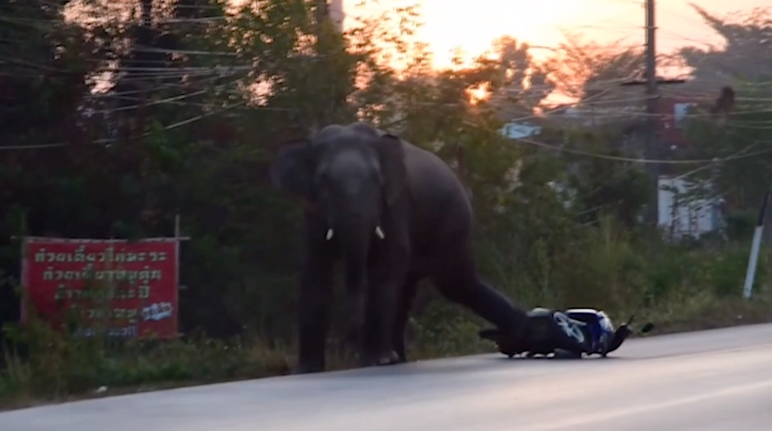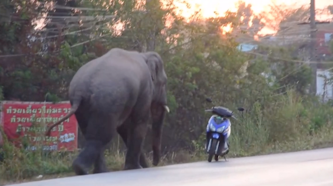 ที่เกิดเหตุพบช้างเพศผู้ 1 ตัว อายุประมาณ 7-8 ปี หนักประมาณ 2-3 ตัน ท่าทางเหมือนจะต้องการข้ามถนน แต่เนื่องด้วยเป็นช่วงเวลาเช้าและมีประชาชนใช้รถยนต์สัญจรผ่านไปมาจำนวนมาก ทำให้ช้างส่งเสียงร้องคำรามดังและมีอาการตื่นตกใจ และช้างได้เดินไปเตะรถจักรยานยนต์ของผู้สื่อข่าวพังเสียหาย 1 คัน ซึ่งขณะนี้เจ้าหน้าที่วางแผนนำกำลังกระจายโอบล้อมบริเวณป่าแห่งนี้ และหารือแนวทางผลักดันช้างต้อนให้คืนทาง ซึ่งต้องใช้ความระมัดระวังอย่างมากเนื่องจากเป็นเขตพื้นที่ชุมชน มีบ้านเรือน โรงเรียน ร้านค้า จำนวนมาก จึงต้องรอบคอบและไม่ทำให้ช้างเครียดและอาจจะทำร้ายคนได้