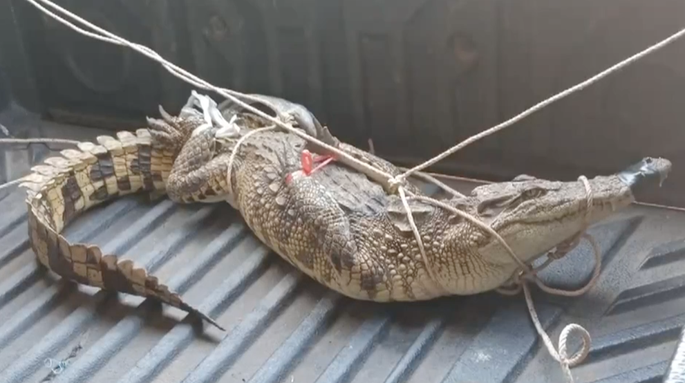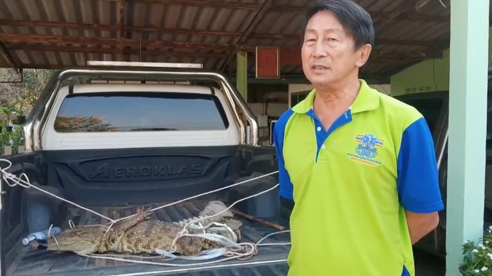 ปราจีนบุรี 3 ก.พ.- เกิดเหตุจระเข้ยาวประมาณ 1 เมตรครึ่ง หนักราว 40 กิโลกรัม คลานเข้าไปในห้องนอนของคนงานในร้านวัสดุก่อสร้างที่บ้านโนน หมู่ 8 ต.กบินทร์ อ.กบินทร์บุรี จ.ปราจีนบุรี ประสานหน่วยกู้ภัยสัจจะพุทธธรรมกบินทร์บุรีจับจระเข้ตัวดังกล่าวออกจากบ้าน