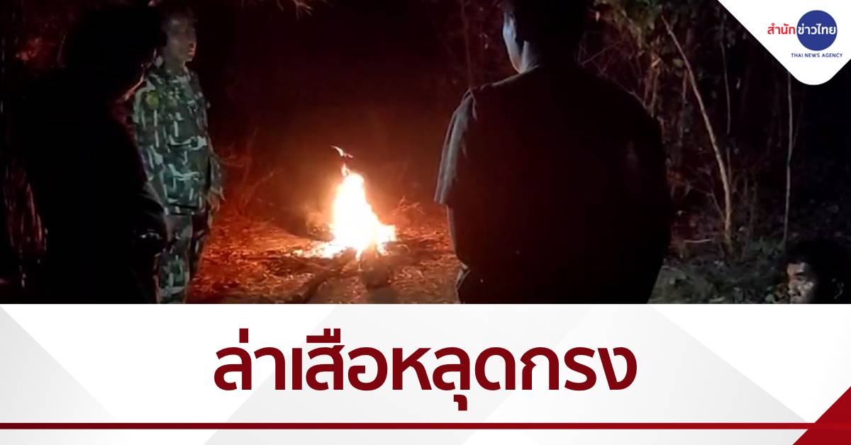 ราชบุรี 4 ก.พ.- เจ้าหน้าที่ระดมกำลังนับ 100 ตามล่าเสือเพศเมียหลุดจากกรงขังของสถานีเพาะเลี้ยงสัตว์ป่าเขาสน ต.รางบัว อ.จอมบึง จ.ราชบุรี ตรึงกำลังเข้มชายเขาป้องกันเสือหลบออกนอกพื้นที่ ด้วยการจุดกองไฟช่วงกลางคืน