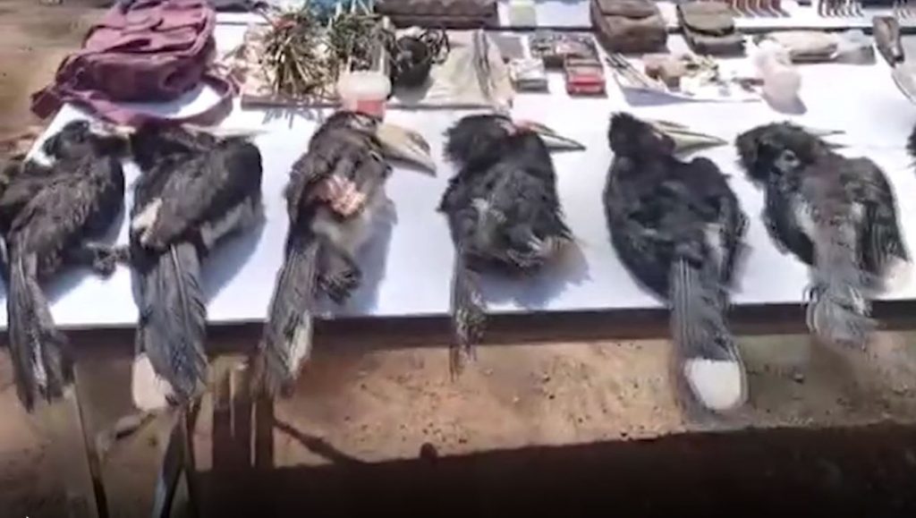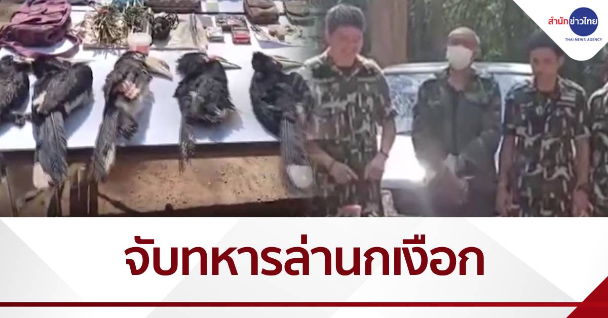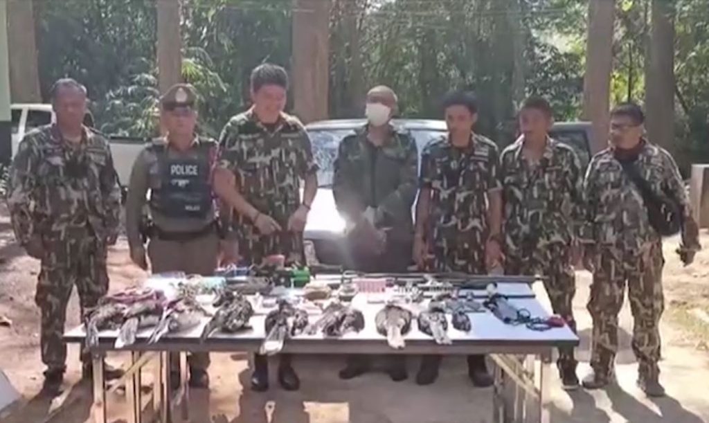 กาญจนบุรี 5 ก.พ.-เจ้าหน้าที่อุทยานฯ ไทรโยค รวบทหารยศ พ.จ.อ. กลางป่า พร้อมของกลางนกเงือก-ยาบ้า-กัญชา อาวุธปืนเครื่องกระสุน และอุปกรณ์การล่าเพียบ สารภาพเพิ่งเสพยาบ้าและกัญชาอีกด้วย