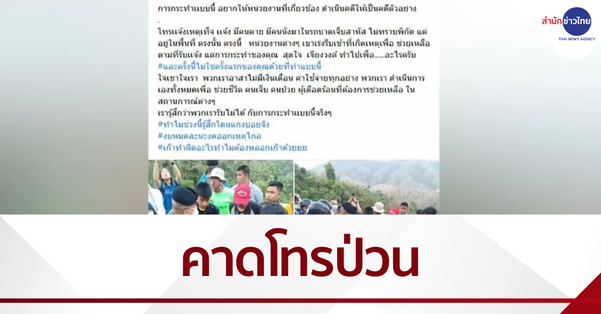 อุตรดิตถ์ 7 ก.พ. – เจ้าหน้าที่กู้ภัยเตรียมแจ้งความดำเนินคดีชายโทรป่วนเป็นผู้ประสบเหตุรถกระบะตกเขาพลึง