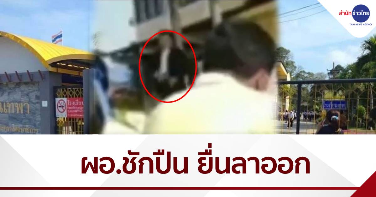 สงขลา 8 ก.พ.-ผอ.โรงเรียนเทพา ยื่นหนังสือลาออกแล้ว หลังโชว์ปืนหน้าเสาธงและละเมิดทางเพศนักเรียนชั้น ม.3 ด้านเลขาธิการ กพฐ. ลั่นตั้งสอบวินัยร้ายแรงต่อ ส่วนคดีอาญา หากผิดจริงต้องได้รับโทษ
