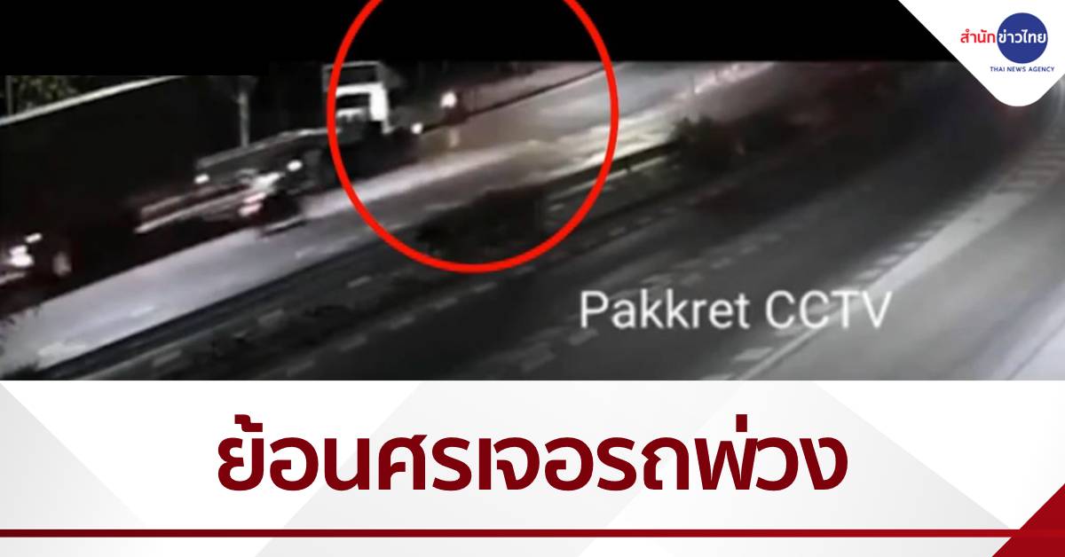 นนทบุรี 9 ก.พ.-เปิดวงจรปิด จยย. ขี่ย้อนศรถูกรถพ่วง 14 ล้อ เฉี่ยวชนก่อนทับร่างเสียชีวิตคาที่ คนขับรถพ่วงเผยพยายามหักหลบแล้วแต่ไม่พ้น