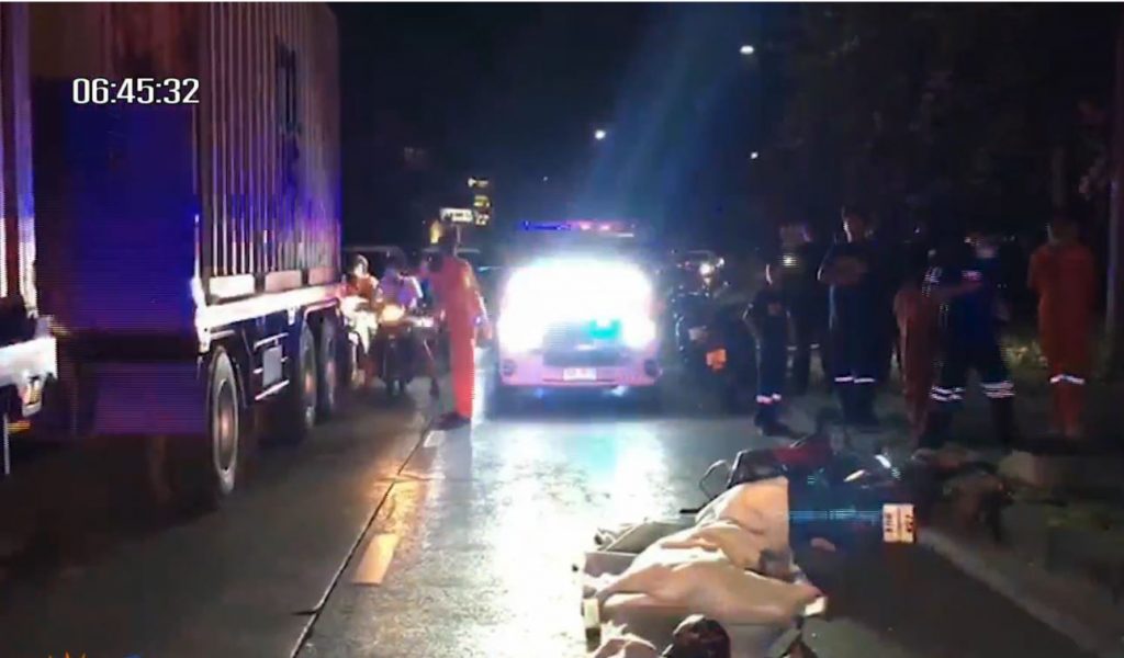 เมื่อเวลา 20.30 น.วันที่ 8 ก.พ.64 ร.ต.อ.บุชิต ทิมา รอง สว.สอบสวน สภ.ปากเกร็ด จ.นนทบุรี พร้อมเจ้าหน้าที่มูลนิธิป่อเต็กตึ๊งเดินทางเข้าตรวจสอบหลังจากได้รับแจ้งมีรถบรรทุกพ่วงเฉี่ยวชนกับรถ จยย. มีผู้เสียชีวิต เหตุเกิดบริเวณถนนเลี่ยงเมืองปากเกร็ดช่วงเชิงสะพานข้ามถนนแจ้งวัฒนะ ต.ปากเกร็ด อ.ปากเกร็ด จากนั้นจึงประสานแพทย์เวรจากสถาบันนิติวิทยาศาสตร์รุดเข้าตรวจสอบ