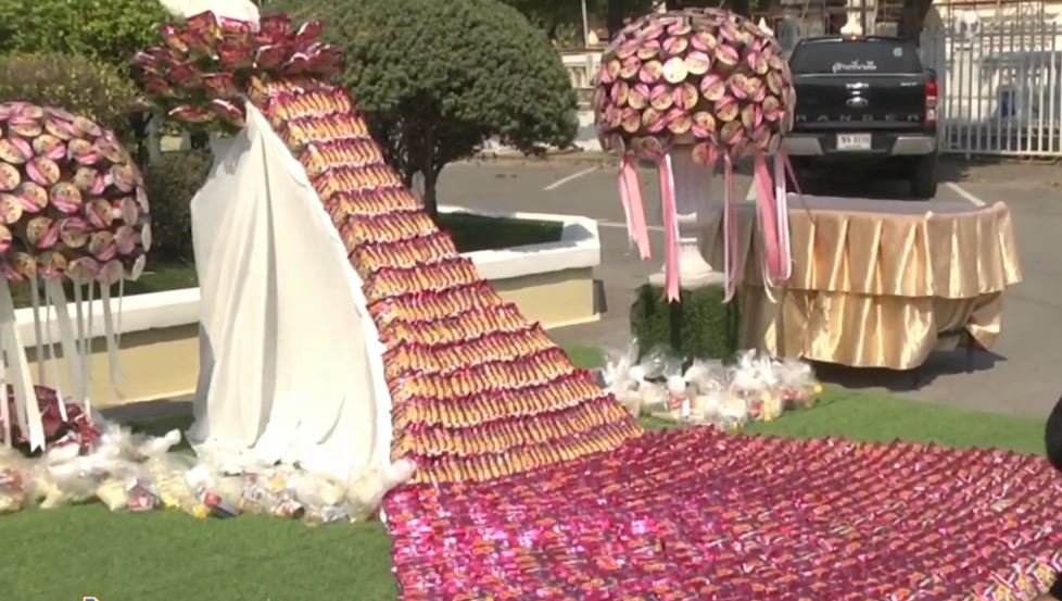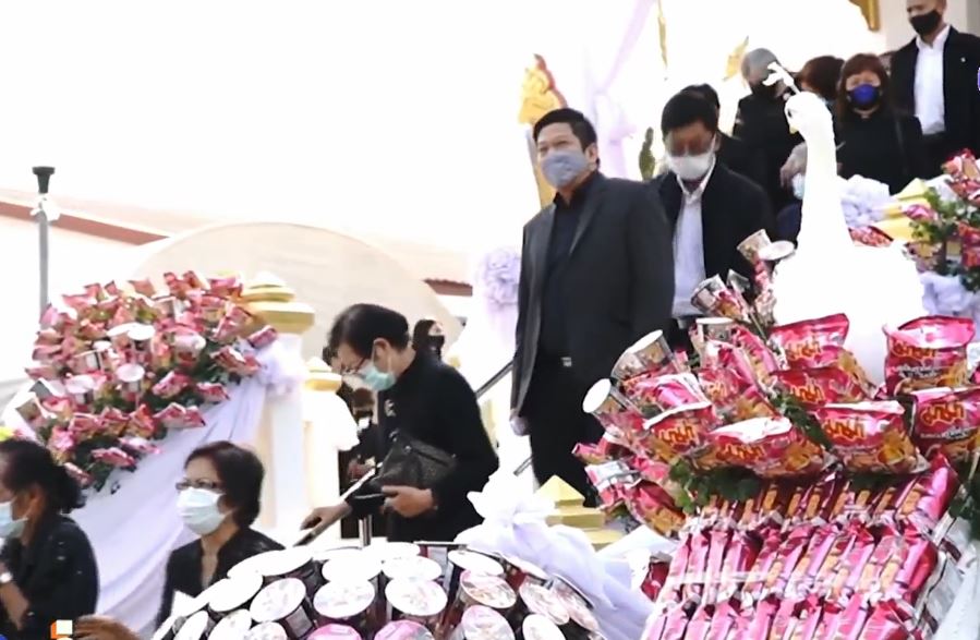 นายเจตน์ บูรณะโสภณ อายุ 59 ปี บุตรชายผู้เสียชีวิต เปิดเผยว่า ครอบครัวมีไอเดียนำข้าวสารอาหารแห้งมาใช้แทนดอกไม้ตกแต่งงานศพ โดยให้ร้านตุ๊กดอกไม้ ซึ่งเป็นร้านจำหน่ายดอกไม้สดในเมืองโคราช มาประดับตกแต่งให้ ปกติร้านนี้จะตกแต่งด้วยดอกไม้สด แต่งานครั้งนี้ใช้ซองบะหมี่กึ่งสำเร็จรูปตกแต่งแทนดอกไม้ โดยใช้บะหมี่ซองมากกว่า 3,000 ซอง แบบถ้วยมากกว่า 1,000 ถ้วย และข้าวสารอาหารแห้งอีกหลายอย่าง รวมมูลค่ากว่า 30,000 บาท ซึ่งหลังจากเสร็จงานศพก็ตั้งใจจะนำข้าวสารอาหารแห้งทั้งหมดไปแจกจ่ายให้กับเด็กนักเรียนในพื้นที่ขาดแคลนต่อไป. – สำนักข่าวไทย