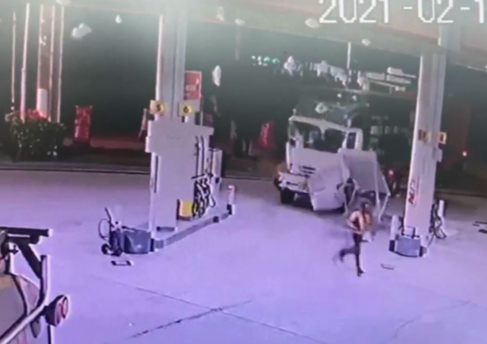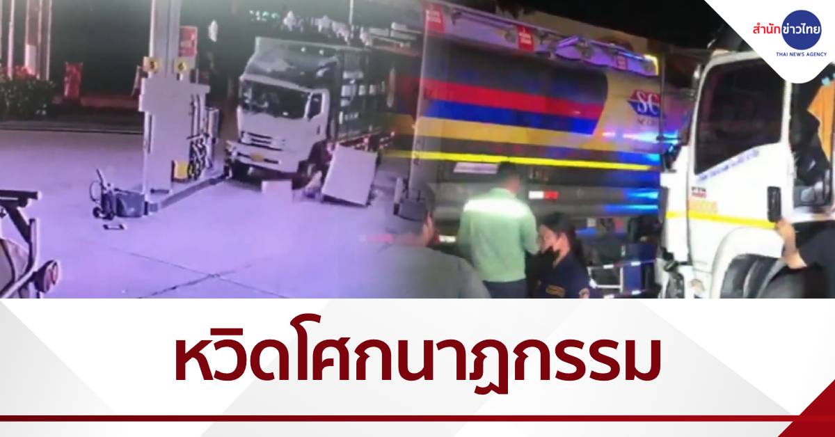 กรุงเทพฯ 10 ก.พ.-ระทึก! รถบรรทุกเฉี่ยวกันพุ่งทะลุเข้าปั๊ม ชนรถบรรทุกน้ำมัน หวิดเกิดโศกนาฏกรรมครั้งใหญ่