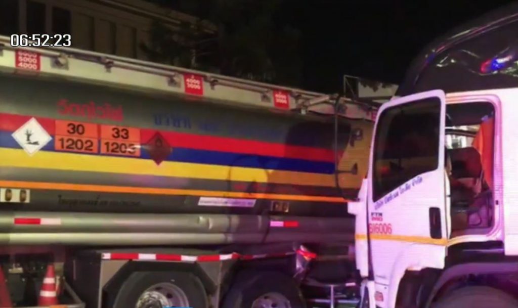 ด้านนายสุรัต คงกระพันธ์ อายุ 37 ปี คนขับรถบรรทุกน้ำมัน กล่าวว่า นับเป็นโชคดีที่ก่อนเกิดเหตุตนขับรถน้ำมันความจุ 20,000 ลิตร ไปส่งให้ลูกค้าที่ปั๊มสาขาอื่นจนกระทั่งน้ำมันหมดถังแล้ว จึงขับรถมาจอดพักที่ปั๊มแห่งนี้ โดยขณะที่รถคู่กรณีทั้ง 2 คันเฉี่ยวชนกันจากบนถนนบริเวณปากทางเข้าปั๊ม ตนยืนอยู่ท้ายรถพอดี ถือเป็นโชคดีอีกชั้นที่คนขับรถบรรทุกสินค้าโลจิสติกส์ ยังพอมีสติควบคุมรถให้แล่นผ่านเข้ามาในลานบริการเติมน้ำมันได้แบบหวุดหวิดโดยที่ไม่พุ่งชนหัวจ่าย หนำซ้ำเมื่อไถลมาชนกับรถตนยังชนเข้ากับเหล็กกันกระแทกด้านข้างถังบรรทุกน้ำมัน ซึ่งมีความแข็งแรงจึงทำให้ถังบรรทุกน้ำมันไม่ได้รับความเสียหาย