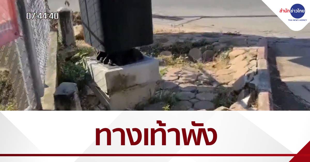 ลำปาง 10 ก.พ.-ชาวบ้านเขตเทศบาลนครลำปาง เดือดร้อน โครงการติดตั้งจอ LED ทำทางเท้าเสียหาย ดินยุบตัว แจ้งเทศบาลแล้ว ยังไม่มีการแก้ไข