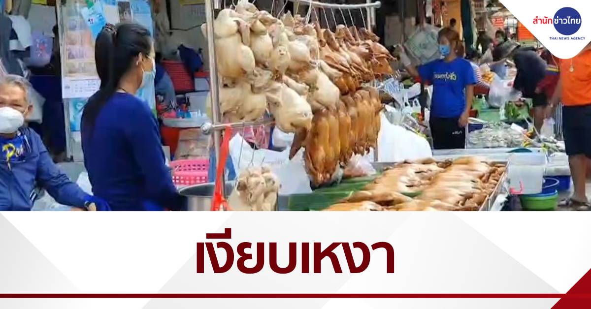 สมุทรสาคร 10 ก.พ.- พิษโควิดทำบรรยากาศจับจ่ายช่วงตรุษจีนที่ตลาดมหาชัยเงียบเหงา ขณะที่สินค้าของไหว้ และอาหารทะเลสด ปรับลดลง