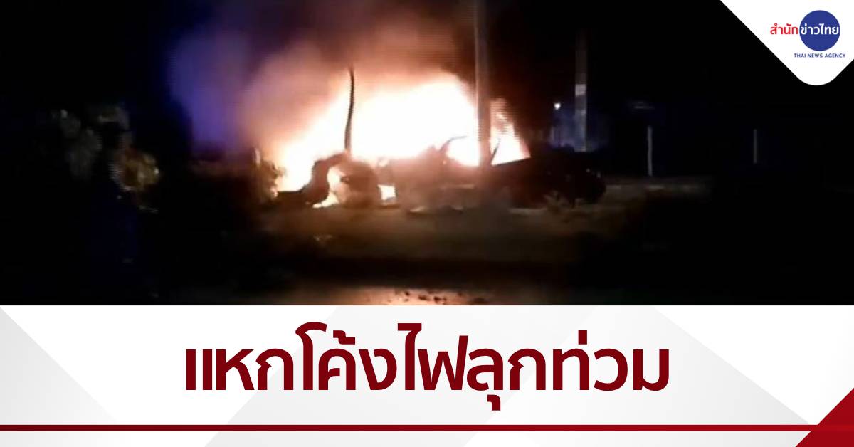 กระบี่ 11 ก.พ.-เก๋งแหกโค้งพุ่งขึ้นเกาะกลางถนนชนต้นไม้ ไฟลุกไหม้เกือบทั้งคัน ภรรยานั่งข้างคนขับ เสียชีวิต ส่วนสามีเจ็บเล็กน้อย คาดไม่ชำนาญเส้นทาง หรือหลับใน