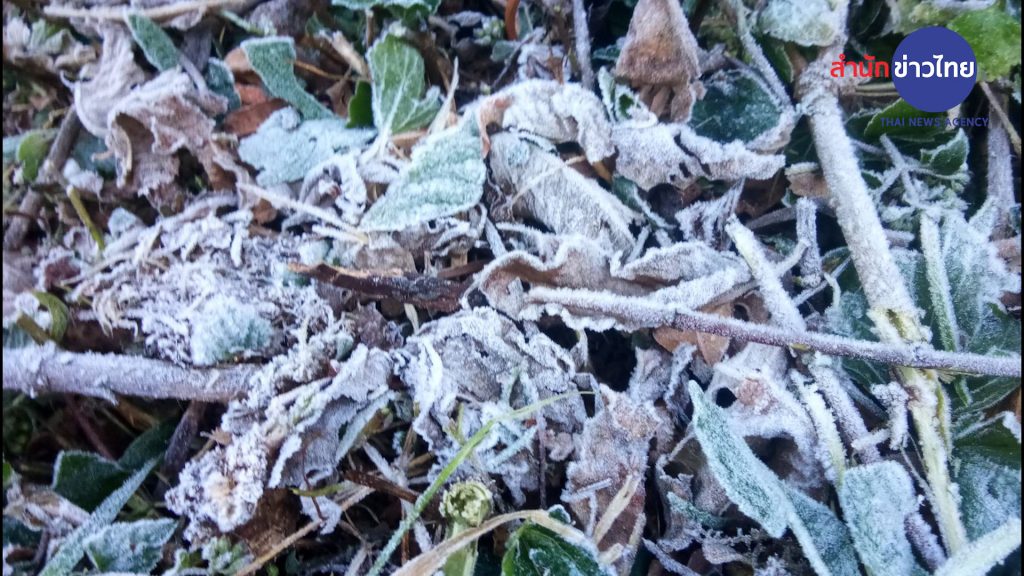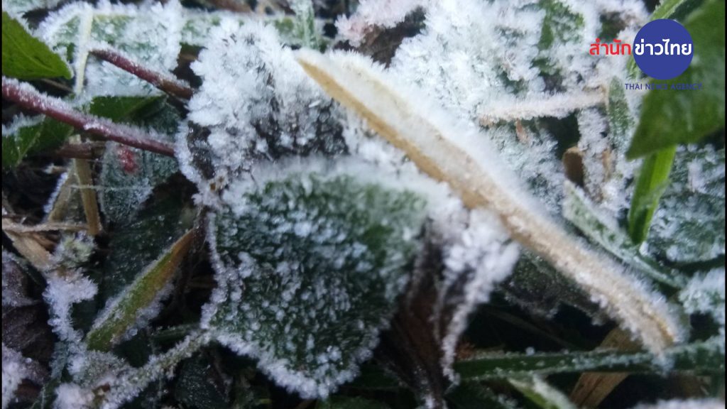 เช้านี้อุณหภูมิต่ำสุดบริเวณกิ่วแม่ปานบนดอยอินทนนท์ จ.เชียงใหม่ อยู่ที่ 4 องศาเซลเซียส แม้จะอุ่นขึ้นจากเมื่อวานนี้ แต่ก็หนาวเย็นพอที่จะทำให้เกิดปรากฏการณ์น้ำค้างแข็งหรือเหมยขาบ ติดต่อกันเป็นวันที่ 3 โดยน้ำค้างที่เกาะตามต้นไม้ใบหญ้า หรือแม้แต่รถยนต์ที่จอดไว้ กลายเป็นเกล็ดน้ำแข็งจนขาวโพลน รับเทศกาลตรุษจีน สร้างความตื่นตาตื่นใจให้นักท่องเที่ยวที่ขึ้นไปสัมผัสความหนาวเย็น และท่องเที่ยวบนดอยอินทนนท์ในช่วงวันหยุดพิเศษ ซึ่งมีจำนวนหนาตาขึ้นเป็นอย่างมาก หลายคนถ่ายภาพความสวยงามของน้ำค้างแข็งและทัศนียภาพบนดอยอินทนนท์ช่วงปลายหนาวเก็บไว้เป็นที่ระลึกกันคึกคัก .-สำนักข่าวไทย