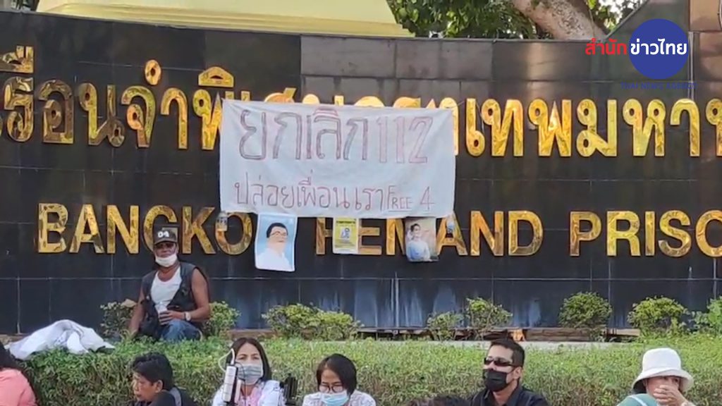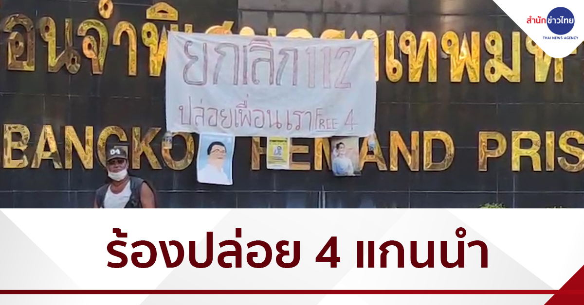 เมื่อเวลา 15.30 น. วันที่ 12 ก.พ. ที่เรือนจำพิเศษกรุงเทพมหานคร เครือข่ายคนรุ่นใหม่นนทบุรี จัดกิจกรรมวันศุกร์ ปลุกความยุติธรรม “เทียนขาว” พร้อมหัวใจที่ผูกพัน เพื่อเรียกร้องให้ปล่อยตัว 4 แกนนำราษฎร คือนายพริษฐ์ ชิวารักษ์ หรือเพนกวิน นายอานนท์ นำภา นายสมยศ พฤกษาเกษมสุข และนายปติวัฒน์ สาหร่ายแย้ม หรือหมอลำแบค์ ที่ถูกฝากขังอยู่ในเรือนจำ