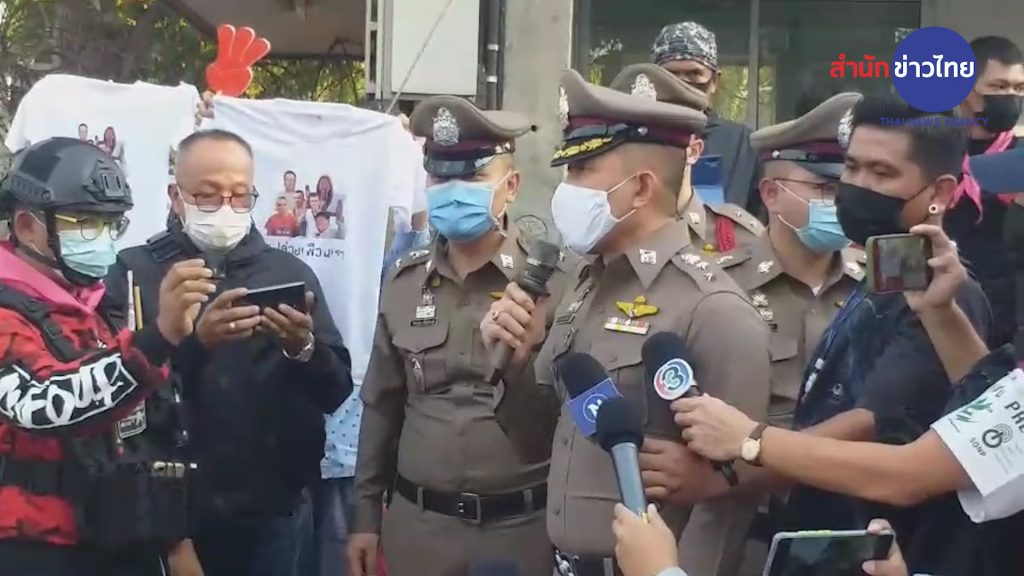 จากนั้น ในเวลา 17.00 น. พ.ต.อ.สุเมธ โภชนา ผกก.สน.ประชาชื่น ได้เดินทางมาอ่านประกาศขอให้ยุติการชุมนุม เนื่องจากผิด พ.ร.ก.ฉุกเฉินฯ, พ.ร.บ.ควบคุมโรค โดยระหว่างนั้นมีแนวร่วมเข้ามาเคาะตีหม้อ และตะโกนต่อว่าด้วยความไม่พอใจ .-สำนักข่าวไทย