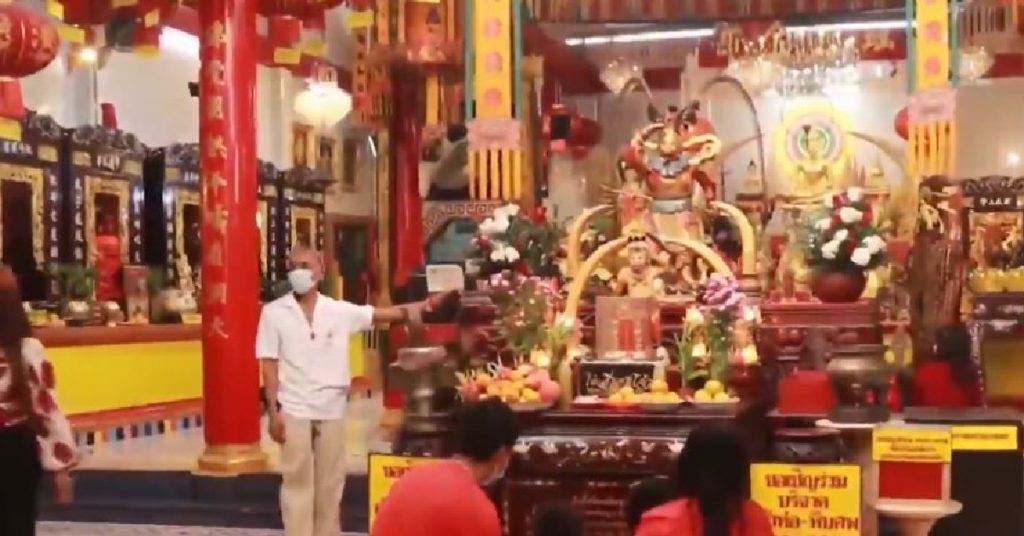 ที่วัดพนัญเชิงวรวิหาร จ.พระนครศรีอยุธยา ประชาชนชาวไทยและชาวไทยเชื้อสายจีนจากทั่วสารทิศ เดินทางไปสักการะขอพรและห่มผ้าหลวงพ่อโต หรือพระไตรรัตนนายก รวมถึงไหว้ต้อนรับเทพเจ้าไฉ่ซิงเอี้ย หรือเทพเจ้าแห่งโชคลาภ เจ้าแม่สร้อยดอกหมาก ตามความเชื่อที่ว่าจะช่วยสร้างความเป็นสิริมงคลและความเจริญรุ่งเรืองในการประกอบอาชีพค้าขาย นอกจากนี้ยังมีประชาชนที่เชื่อในเรื่องปีชง มาร่วมพิธีการสะเดาะเคราะห์ ฝากดวงชะตาแก่เทพเจ้าต่างๆ ที่ทางวัดจัดขึ้นด้วย โดยทางวัดได้จัดพื้นที่ให้ประชาชนเข้าสักการะตามวิถีใหม่ เว้นระยะห่างตามมาตรการ Social Distancing ไม่ว่าจะเป็นการยืน หรือนั่งกราบพระ เพื่อป้องกันการแพร่ระบาดของโควิด-19