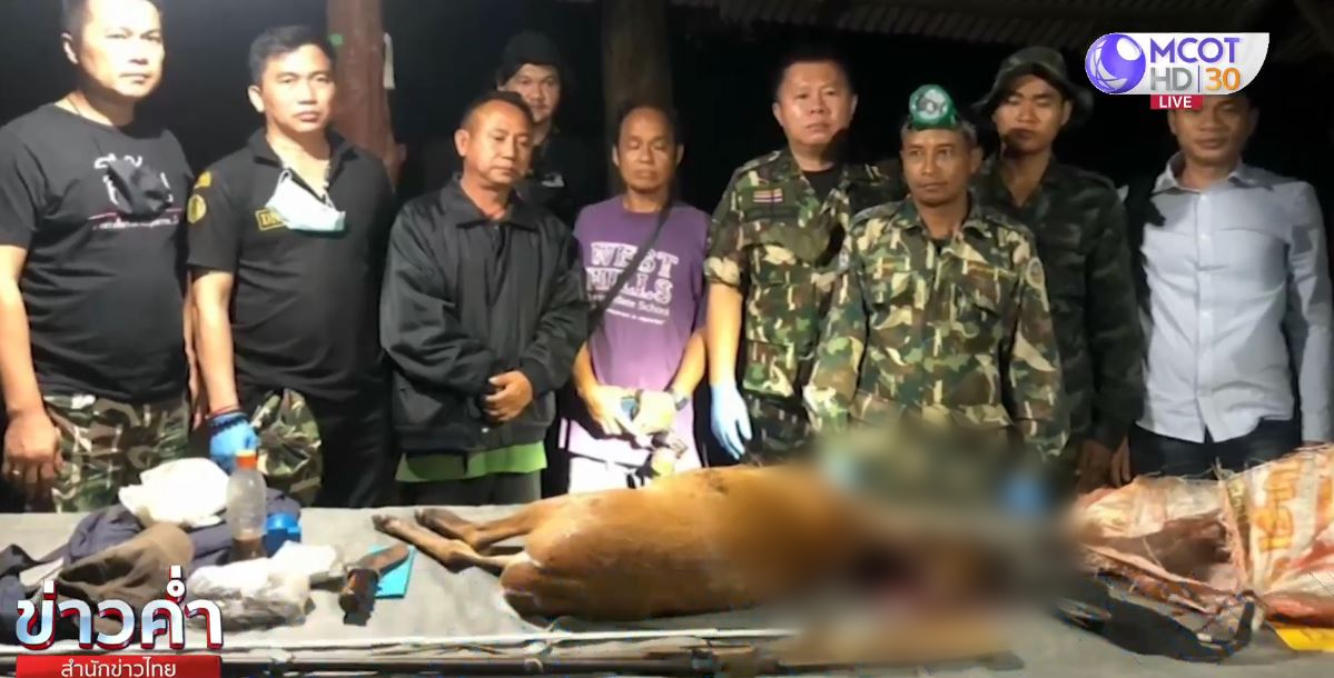 นายพิชัย วัชรวงษ์ไพบูลย์ ผอ.สบอ.3 สาขาเพชรบุรี เปิดเผยว่า รายงานผลการเดินลาดตระเวนและตั้งจุดสกัดป้องกันการกระทำความผิดกฎหมาย บริเวณป่าห้วยโป่งลึก ม.1 และ ม.2 บ้านโป่งลึก-บางกลอย ต.ห้วยแม่เพรียง อ.แก่งกระจาน จ.เพชรบุรี ภายในพื้นที่หน่วยพิทักษ์อุทยานแห่งชาติที่ กจ.10 (แม่สะเรียง) อุทยานแห่งชาติแก่งกระจาน ว่าวานนี้พบมีชาย มือขวาถือปืน หันปากกระบอกปืนมาทางเจ้าหน้าที่ ด้านหลังสะพายถุงกระสอบปุ๋ย จึงได้เรียกและแสดงตัวขอเข้าตรวจสอบ เมื่อบุคคลดังกล่าวเห็นและได้ยินเสียงของเจ้าหน้าที่ จึงทิ้งอาวุธปืน ถุงกระสอบ และสัมภาระทั้งหมด จากนั้นวิ่งหลบหนีไป โดยอาศัยความมืดและความชำนาญเส้นทาง เมื่อตรวจสอบสิ่งของที่ทิ้งไว้ พบปืนแก๊ปไทยประดิษฐ์ 1 กระบอก ภายในบรรจุลูกตะกั่ว และดินปืน พร้อมใช้งาน, ถุงกระสอบปุ๋ย ดัดแปลงติดสายคาดศีรษะ ภายในบรรจุซากเก้ง จำนวน 1 ตัว มีลักษณะสมบูรณ์ อวัยวะส่วนต่างๆ ครบถ้วน น้ำหนัก 17 กก. มีร่องรอยรูที่เจาะทะลุด้วยกระสุนปืนบริเวณคอด้านขวา, อุปกรณ์การกระทำความผิด 7 รายการ