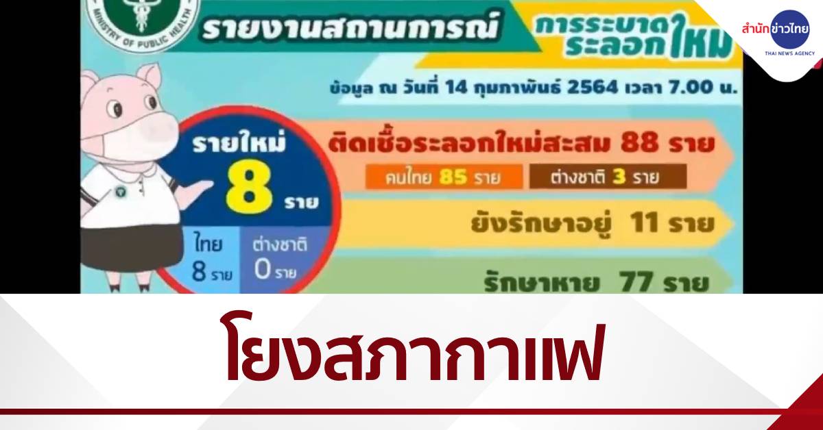 นครปฐม 14 ก.พ.-สำนักงานสาธารณสุขจังหวัดนครปฐม ยืนยันพบผู้ป่วยโควิด-19 เพิ่ม 8 ราย ในพื้นที่หมู่ 3 ต.ดอนแฝก อ.นครชัยศรี จ.นครปฐม เชื่อมโยงสภากาแฟ