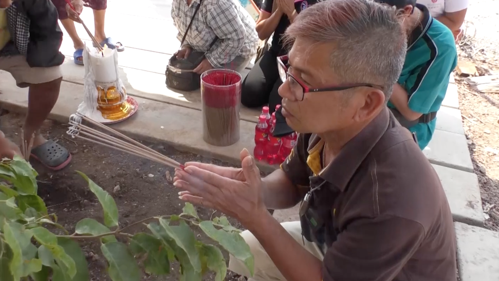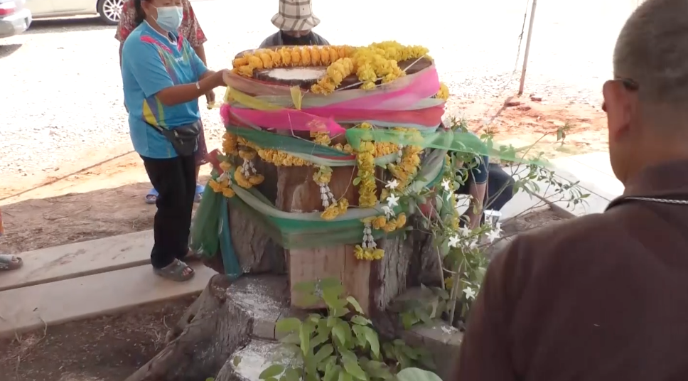 สมุทรสงคราม 15 ก.พ.- วัดแห่งหนึ่งในตำบลนางตะเคียน จังหวัดสมุทรสงคราม ช่วงใกล้วันหวยออก ชาวบ้านต่างมากราบไหว้ขอเลขเด็ดจากตอไม้ตะเคียนทอง พร้อมหาเลขเด็ดตามความเชื่อ