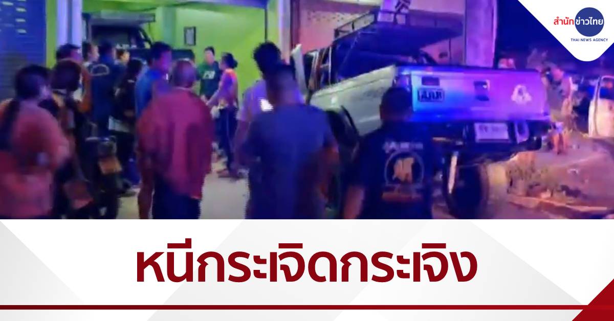 ชลบุรี 16 ก.พ.- ตั้งวงกินข้าวต้องหนีกระเจิดกระเจิง กระบะพุ่งชน จยย.พ่วงข้าง กระจาย ก่อนเสียหลักชนรถอีกคันที่จอดอยู่ แล้วพุ่งเข้ามาที่โต๊ะกินข้าวหน้าบ้าน เจ็บ 6 ราย