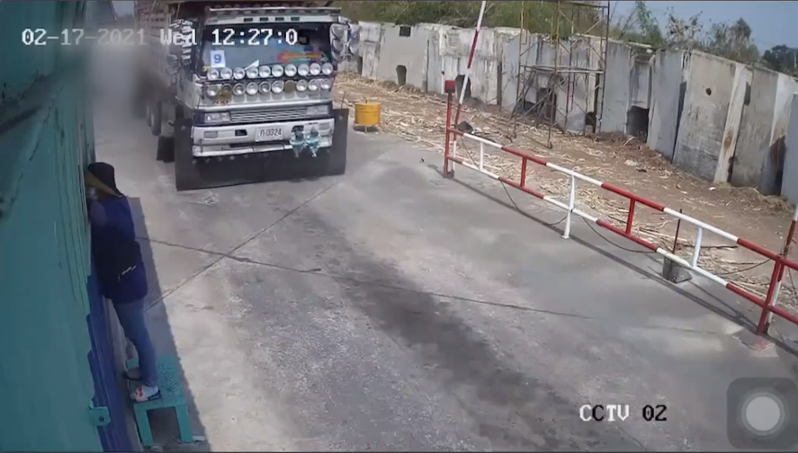 กล้องวงจรปิดบริเวณจุดเกิดเหตุภายในโรงงานน้ำตาลแห่งหนึ่งในจังหวัดเพชรบูรณ์ บันทึกภาพเหตุการณ์ขณะรถพ่วงบรรทุกอ้อย ทะเบียน 80-9624 เพชรบูรณ์ กำลังขับเข้ามา ขณะที่รถจักรยานยนต์ขับอยู่ด้านหน้า ซึ่งคาดว่าคนขับรถพ่วงมองไม่เห็น จึงชนรถจักรยานยนต์ล้มลง จนตัวคนขี่รถจักรยานยนต์กระเด็นไปนอนอยู่บนพื้นถนน และล้อรถพ่วงได้เหยียบทับร่างจนแน่นิ่งอยู่กับพื้น หลังเกิดเหตุรถพ่วงหยุดและคนขับได้เปิดประตูลงมาดูเหตุการณ์