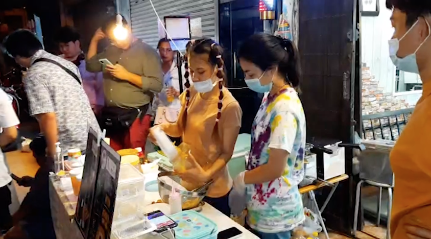 พอได้ร้านตรงนี้ ก็ขายเฟรนช์ฟรายส์ ไก่ป๊อป เกี๊ยวซ่า กุ้งระเบิด นักเก็ต ส่วนผงโรยจะมีรสเกลือ บาร์บีคิว ชีส ปาปริก้า เมื่อก่อนมีให้เลือกเยอะ แต่ตอนนี้ตัดเหลือแค่ 4 รส เพราะว่าทำไม่ทันจริงๆ ที่ไปดังในติ๊กต่อก เพราะว่า วันนั้น มันเงียบขายไม่ดี จึงเต้นเล่นๆ เพลงนึง แล้วลูกค้ามาเห็น ขอถ่ายคลิปเก็บไว้ เราเลยขอคลิปจากน้องเค้าเอามาลงติ๊กต่อก ตั้งแต่นั้นมาก็มีลูกค้าเริ่มทยอยมาอุดหนุน เราก็คิดว่าลูกค้าชอบแบบนี้หรอ ตั้งแต่นั้นเราก็เต้นแรงขึ้น เราก็สนุก เพราะเราชอบเต้นอยู่แล้ว แต่ถ้าลูกค้าไม่ขอเราก็ไม่เต้นนะ เราก็ไม่รู้ว่าลูกค้าจะชอบหรือไม่ชอบแบบไหนกันแน่ สุดท้ายก็ขอฝากประชาสัมพันธ์ว่าถ้าผ่านมาจรัญฯ 35 แวะเข้ามาอุดหนุนหนูกันได้ ถ้าเกิดหนูทอดช้า อย่าว่าหนูเพราะหนูอยากให้ได้ทานของที่อร่อย ทอดต้องสุกพอดี นิ่มไป หรือแข็งไปมันก็จะไม่อร่อย.3-สำนักข่าวไทย
