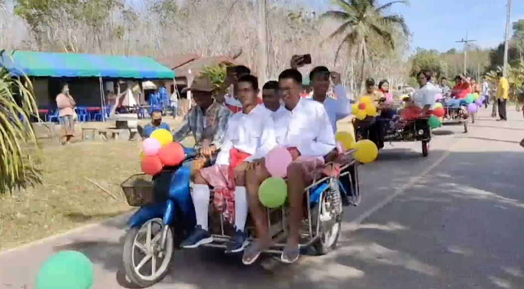 นายสมมาตร เขียวน้อย อายุ 41 ปี น้าชายของเจ้าบ่าวเล่าว่า สาเหตุที่ได้จัดขบวนขันหมากด้วยรถสามล้อพ่วงข้างนั้น สืบเนื่องจากเป็นความประสงค์ของทางเจ้าบ่าว ซึ่งมีอาชีพเด็กเลี้ยงวัวชน ทุกๆ วันจะใช้รถจักรยานยนต์สามล้อไปตัดหญ้าให้วัวเป็นประจำ ตนจึงเกิดไอเดียที่จะใช้รถสามล้อพ่วงมาร่วมขบวนแห่ขันหมาก โดยรวบรวมรถสามล้อมของเพื่อนๆ ในหมู่บ้าน 45 คัน ส่วนเงินสินสอด 200,000 บาท เป็นเงินที่เจ้าบ่าวได้จากการขายวัว ในราคา 140,000 บาท และเงินเก็บอีก 60,000 บาท ซึ่งตนภูมิใจในตัวหลานชายมาก เพราะเป็นคนสู้ชีวิต แม้พ่อแม่จะแยกทางกันตั้งแต่หลานชายยังเล็ก แต่ก็พยามดิ้นรนทำงานหาเลี้ยงตัวเองและส่งเสียน้องๆ เรียนหนังสือโดยไม่รบกวนญาติพี่น้อง ขณะที่ฝ่ายเจ้าสาวก็นิสัยดีทำงานที่ร้านขายวัสดุก่อสร้าง จึงขออวยพรให้ทั้งคู่อยู่กันอย่างมีความสุข.-สำนักข่าวไทย