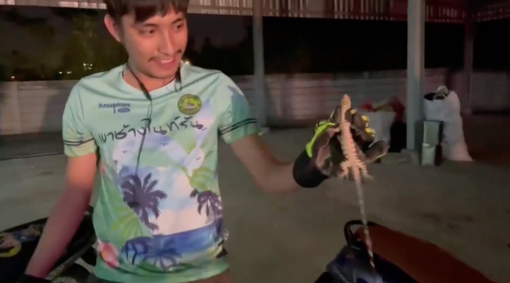 ที่หอพักนักศึกษามหาวิทยาลัยราชภัฎสวนสุนันทา ศูนย์การศึกษาจังหวัดสมุทรสงคราม อ.เมืองสมุทรสงคราม กลุ่มนักศึกษากำลังช่วยกันรื้อรถจักรยานยนต์ยี่ห้อฮอนด้าเวฟ สีฟ้า-เทา ทะเบียน 1กค 4895 สมุทรสงคราม ของนางสาวพัชรินทร์ อาษาธง อายุ 21 นักศึกษาชั้นปีที่ 3 สาขาวิทยาศาสตร์สุขภาพการดูแลผู้สูงอายุ หลังพบตัวเงินตัวทองเข้าไปซุกซ่อนภายในรถจักรยานยนต์ โดยกลุ่มนักศึกษาได้พยายามรื้อเปลือกด้านท้าย แต่ตัวเงินตัวทองก็หนีเข้ามาด้านหน้าของรถจักรยานยนต์ ทำให้ต้องรื้อทั้งคัน ใช้เวลาประมาณ 2 ชั่วโมง ตัวเงินตัวทองขนาดตัวกว่า 1 ฟุต วิ่งหนีออกมา จึงไล่จับมาปล่อยสู่ธรรมชาติ