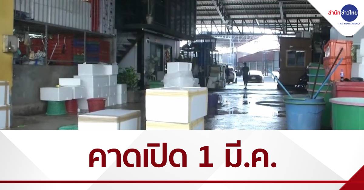 สมุทรสาคร 25 ก.พ.-การประชุม ศบค. ชุดเล็ก คาดตลาดกลางกุ้งจะกลับมาเปิดได้ วันที่ 1 มี.ค.นี้ หลังปิดมานานเกือบ 2 เดือน และอาจเสนอปลดล็อกสมุทรสาครจากพื้นที่สีแดงเข้มเป็นสีแดง