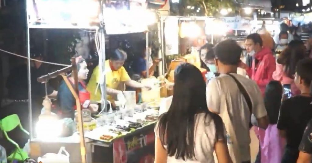 แม่ค้าบนถนนคนเดินระบุว่า นักท่องเที่ยวคึกคักเป็นพิเศษ คงเป็นเพราะว่าวันหยุดยาว และมาใช้เงินที่รัฐบาลให้ในโครงการเราชนะ เพราะส่วนใหญ่ที่มาจับจ่ายซื้อของต่างใช้แอปฯ เป๋าตัง จ่ายเงินกันแทบจะทุกคน ขณะที่โครงการคนละครึ่งก็ยังมีมาใช้เช่นกัน