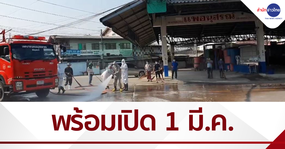 วันที่ 1 มีนาคมนี้ ตลาดกลางกุ้ง จังหวัดสมุทรสาคร จะกลับมาค้าขายตามปกติ โดยวันนี้เทศบาลนครสมุทรสาครนำรถน้ำ 2 คัน และคลอรีน ล้างและฉีดพ่นในพื้นที่ โดยมีแรงงานข้ามชาติในพื้นที่ร่วมใจช่วยกันทำความสะอาด และเช้าวันพรุ่งนี้จะมีพิธีบุญให้กับตลาดด้วย
