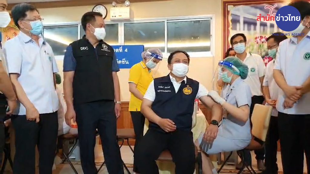 สมุทรสาคร 28 ก.พ.-“อนุทิน” เยี่ยมการบริหารจัดการวัคซีนโควิด-19 และเป็นประธานฉีดวัคซีนเข็มแรกของจังหวัดสมุทรสาคร โดยมี “ธีรพัฒน์” รองผู้ว่าฯ รักษาราชการแทนผู้ว่าฯ สมุทรสาคร ประเดิมฉีดคนแรก ขณะที่วันนี้จะมีผู้ได้รับการฉีดวัคซีนทั้งหมด 159 ราย