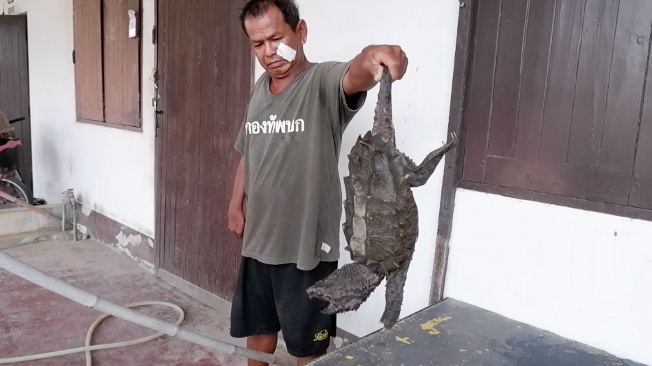 ประจวบคีรีขันธ์ 4 มี.ค.- หลังเจ้าของเฟซบุ๊กที่ใช้โปรไฟล์ว่า “ชีวิตที่เลือกได้ อิสระ” ลงรูปภาพเต่าอัลลิเกเตอร์ พร้อมข้อความว่าเจออีกตัวแล้วมันคือเต่าอะไร โดยพบที่แม่น้ำปราณบุรี จ.ประจวบคีรีขันธ์ ติดอยู่ในลอบดักปลา ชาวบ้านต่างแตกตื่นเพราะเต่ามีรูปร่างประหลาด