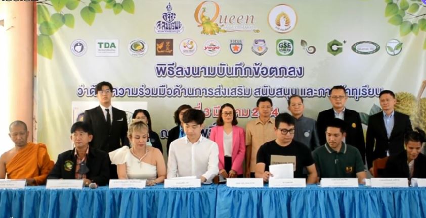 จันทบุรี 5 มี.ค.-เจ้าอาวาสวัดโพธิ์ทอง ดึงผู้ประกอบการส่งออกผลไม้ จับมือเกษตรกรลงนาม MOU ส่งออกทุเรียนออร์แกนิก จันทบุรี บินไปจีน เสนอราคาเริ่มต้น กก.ละ 1,000 บาท