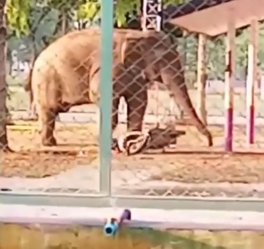 ครูสาวท่านหนึ่งได้บันทึกภาพคลิปเอาไว้ พร้อมกับร้องขอพี่ช้างป่าสีดอแก้ว ให้เดินออกไปจากโรงเรียน เพราะเกรงว่าจะทำให้เด็กเกิดความหวาดกลัว แต่เจ้าช้างไม่สนใจ เดินชนรถจักรยานยนต์ของครูสาวจนรถล้ม