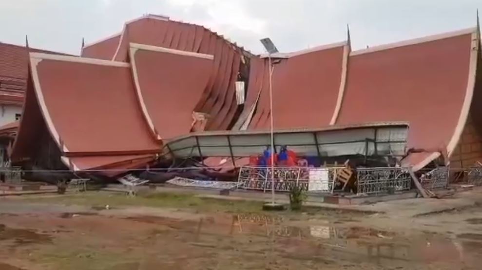 สำรวจความเสียหายศาลาวัดบ้านมะรุมถูกพายุถล่ม