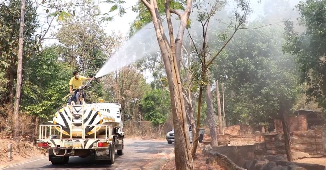 เชียงใหม่ไนท์ซาฟารี ฉีดน้ำลดผลกระทบหมอกควัน