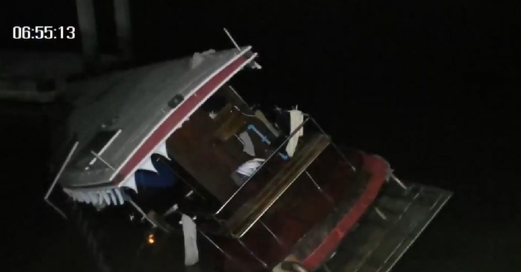 ช่วงกลางดึกที่ผ่านมา ตำรวจ สภ.เมืองสมุทรสงคราม รับแจ้งเหตุเรือล่มหน้าวัดท้ายหาด ต.ท้ายหาด อ.เมือง จ.สมุทรสงคราม จึงไปตรวจสอบ พบเรือเมล์ขนาดใหญ่จมอยู่บริเวณท่าน้ำหน้าวัดท้ายหาด มีจ่าเอกสมศักดิ์ พึ่งยอด อายุ 69 ปี ชาว อ.สองพี่น้อง จ.สุพรรณบุรี รับเป็นคนขับเรือ และเพื่อนๆ ในวัยเดียวกันอีก 4 คน ว่ายน้ำหนีตายรอดหวุดหวิด