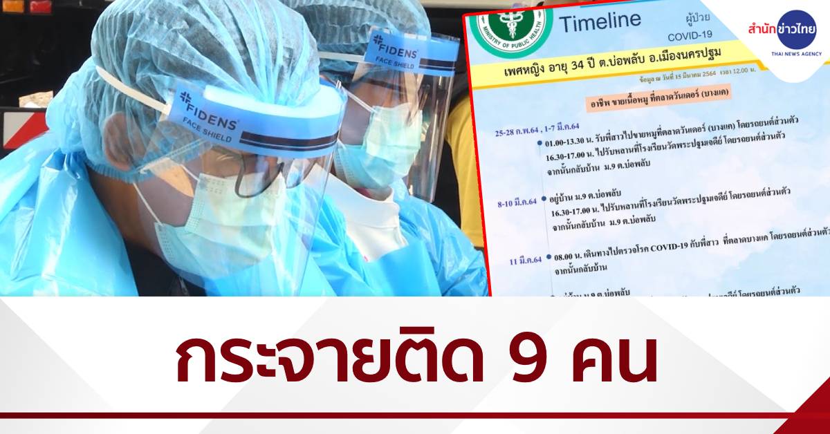 นครปฐม 16 มี.ค.-สาธารณสุขจังหวัดนครปฐม เผยไทม์ไลน์ผู้ติดเชื้อรายที่ 127 แม่ค้าขายหมู ติดจากคลัสเตอร์บางแค กระจายติด 9 คน พบไปเดินห้างฯ ขณะรอผลตรวจ